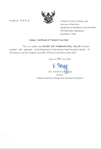 Golden Cup Pharmaceutical Co., Ltd. produces all products under GMP PIC/S, Good Manufacturing Practice Pharmaceutical Inspection Co-operation Scheme, of which our factory is certified by the Thai Food and Drug Administration. GMP PIC/S is the international standard that covers all aspects of good practices including good manufacturing processes, qualification of raw materials, packaging materials, and finished goods. Quality assurance has been in place, including change control, stability testing, validation, calibration, and risk management.